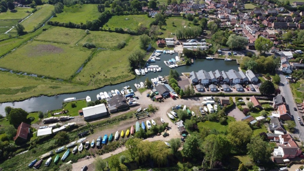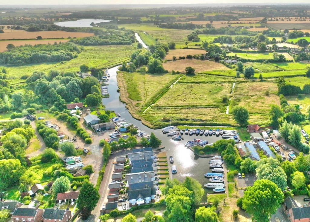 Recently, I stumbled across a fuzzy aerial view of Loddon Staithe, the inland harbour which divides our sleepy parish of Chedgrave from our larger next-door neighbour. Traditionally, a staithe was a wharf for loading and unloading cargo from wherries – flat-bottom sailing ships – which plied their trade up and down the waterways. Back in the day, it was the best (and often the only) way to get coal to the fire and wheat to the mill. Business was brisk until it was killed off by the unstoppable march of the internal combustion engine. Nowadays, the Staithe is the domain of would-be sailors mucking about in pleasure boats and some fancy houses overlooking the glassy waters with their own private moorings.