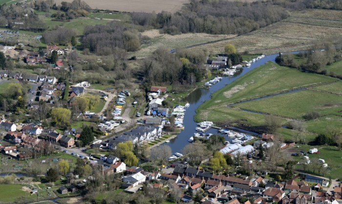 Looking at the photo, I was a bit disappointed not to find our small gaff – sadly we’re just out of the picture. So I did a bit of digging and uncovered a hoard of amazing aerial shots, mostly on Flickr from the talented lens of a fella called John Fielding. I found various images – of the Staithe, of Loddon’s grand 15th-century Holy Trinity Church, of Hardley Flood* and (my favourite) a long shot of the River Chet from the Staithe to the Flood. But still no Pansies HQ, though. Sad face 😞