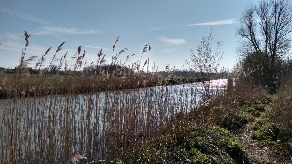 We awake each morning to a cacophony of birdsong and days have merged into one. Life in lockdown passes at a snail’s pace with tasks expanded to fill the time available. Paid work has more or less dried up so domestic chores and essential errands dominate our days. Liam’s very handy with the hoover while I over-dust the knick-knacks. The house has never been so clean. Cabin fever and wall climbing is relieved by long walks along the river Chet and the queue outside our local Co-op store – keeping our distance from others, of course.