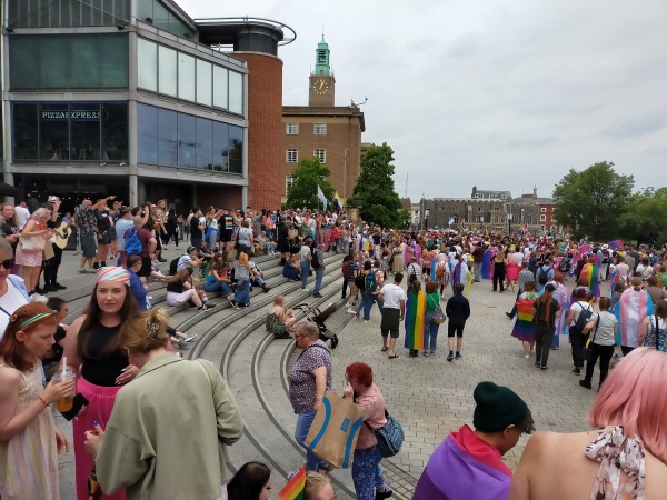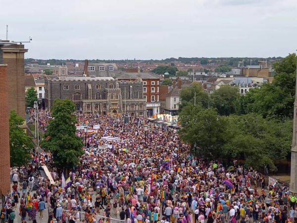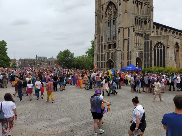 We fancied another pilgrimage and we settled on Peterborough in neighbouring Cambridgeshire, with its epic house of God. While I may be a dedicated heathen, I totally get that back in the days of the great unschooled, the sheer scale and splendour of such colossal erections could keep even the doubters in line. How could mere mortals create such magnificence without the guiding hand of the Almighty? So we jumped on the cross-country ‘Let’s Roll With Pride’ themed train from Norwich.